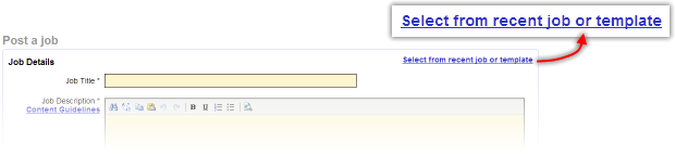 To use a template, go to the job posting page and click 'Select from recent job or template'.